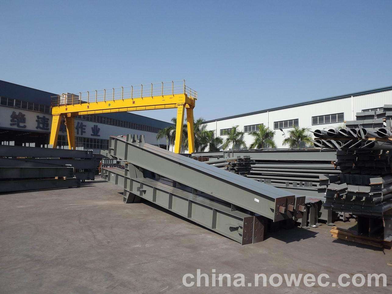 条状单元一般沿长跨方向分割,其宽度约为1~3个网格,其长度为l2或l2/2(l2为短跨跨距)。块状单元一般沿濮阳网架平面纵横向分割成矩形或正方形单元。每个单元的重量以现有起重机能胜任为准。条(块)与条(块)之间可以直接拼装,也可空一网格在高空拼装。由于条(块)状单元是在地面拼装,因而高空作业量较高空散装法大为减少,拼装支架也减少很多,又能充分利用现有起重设备,故较经济。这种安装方法适用于分割后网架的钢度和受力状况改变较小的各类中小型网架,如两向正交正放四角锥、正放抽空四角锥等网架。